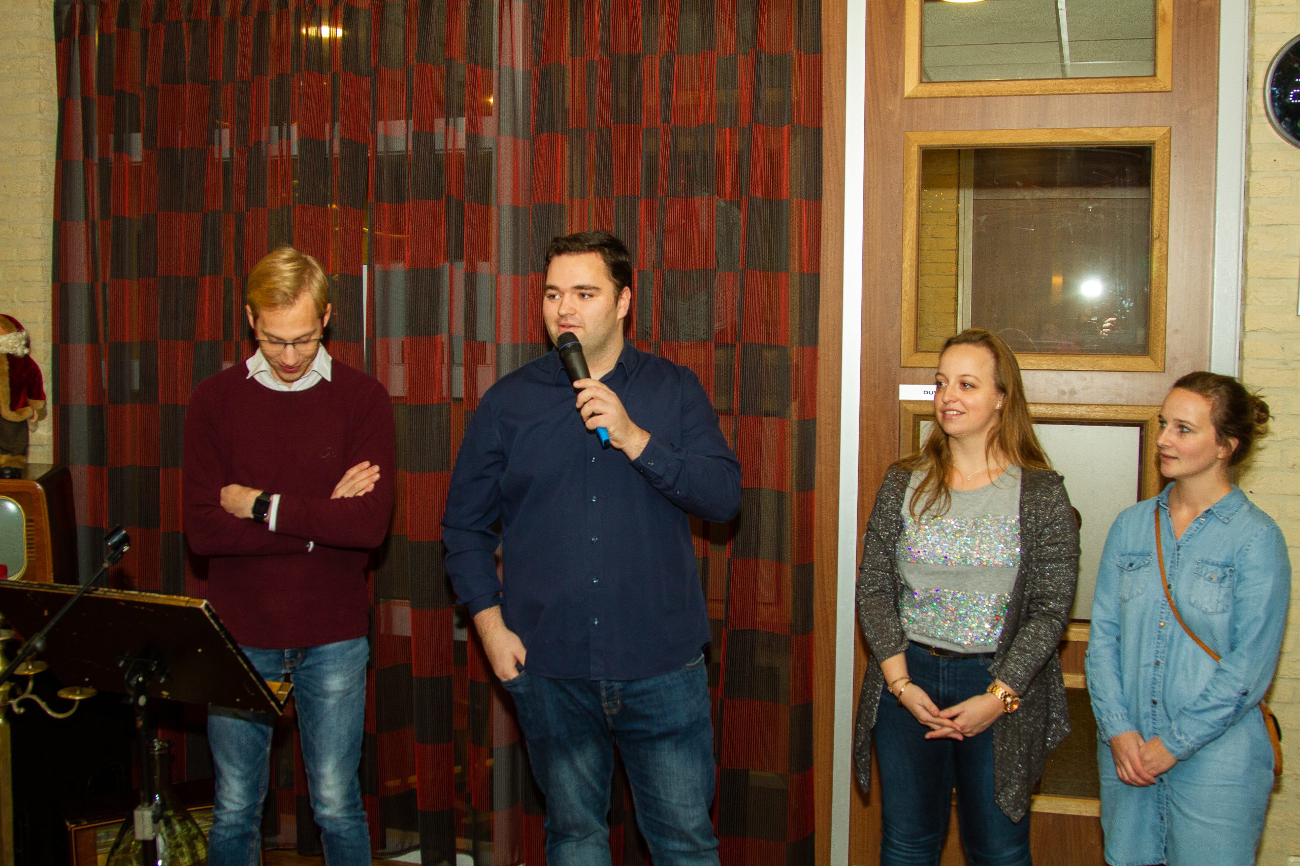 Kyara, Teun, Gijs, Sanne & Joep gefeliciteerd met jullie jubileum. Joep met de Pluim, Noud met de Net Niet Pluim.  De sympathisanten bedankt voor de aangeboden cheque. En natuurlijk het AC bestaande uit Kenny, Lotte, Joep & Anke, voor de organisatie.