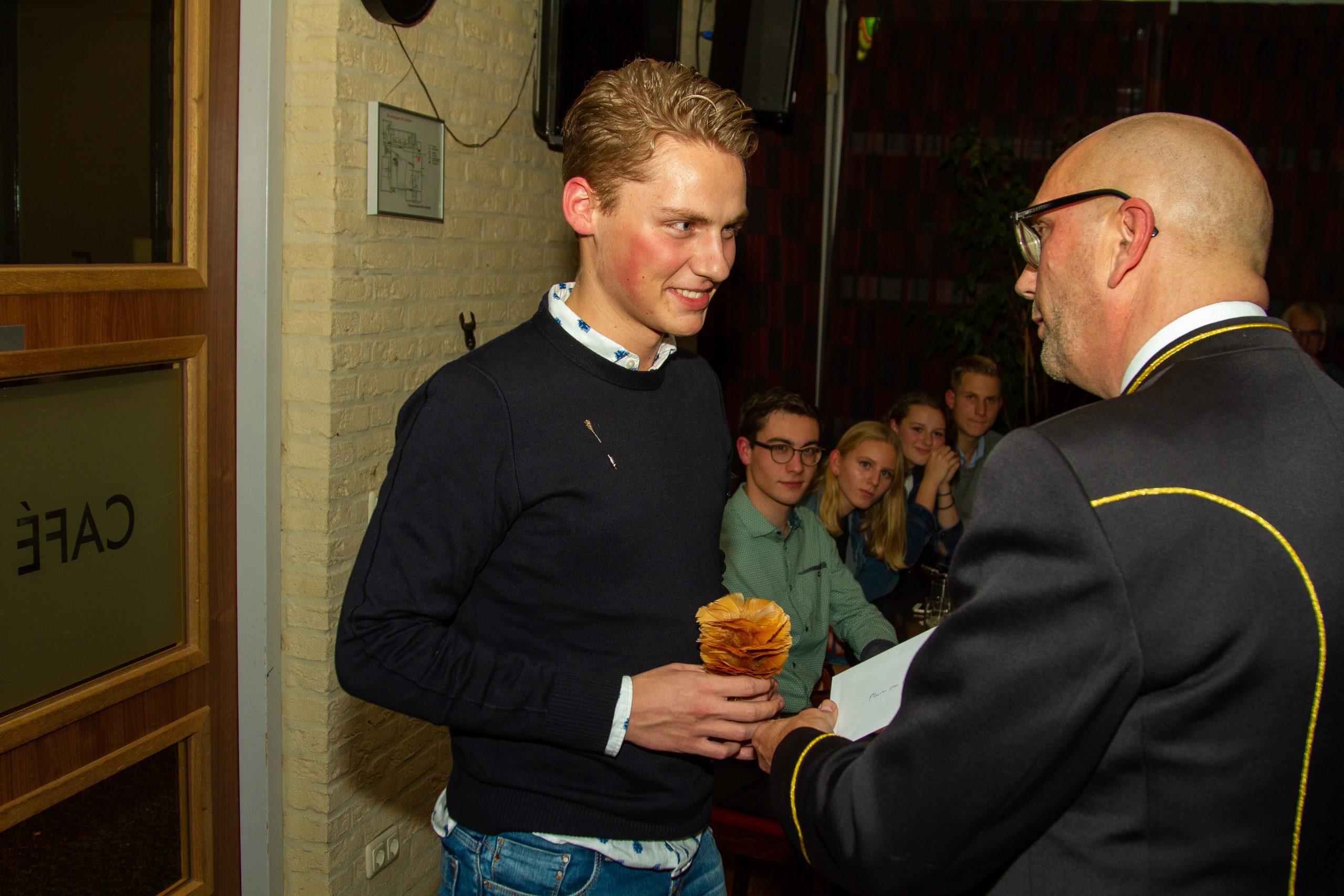 Voordat de avond kon beginnen werd eerst door de harmonie, de mis muzikaal opgeluisterd. Hierna was het voor de meeste muzikanten snel omkleden en daarna richting het gemeenschapshuis. Daar stond de frietwagen al klaar en kon iedereen meteen aanvallen. Dit jaar waren er 5 jubilarissen die door de voorzitter gehuldigd mochten worden. Kyara van der Valk, Teun Steskens, Gijs de Kever, Sanne Tesselaar & Joep Tummers waren 10 jaar bij de Harmonie.