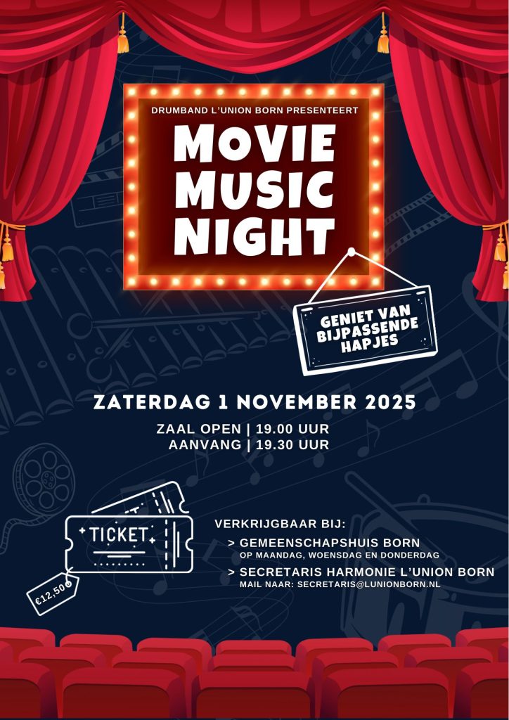 Op zaterdag 1 november aanstaande organiseert de drumband een Movie Music Night, compleet met bijpassende hapjes.
